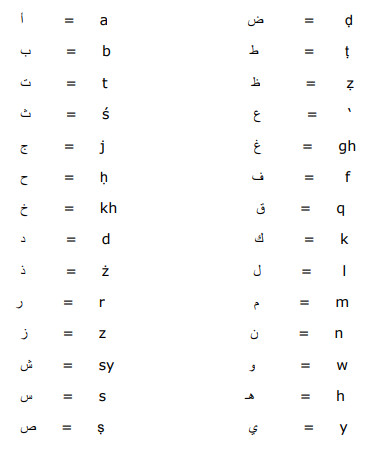 - See below for a character-by-character map of our transliteration system: