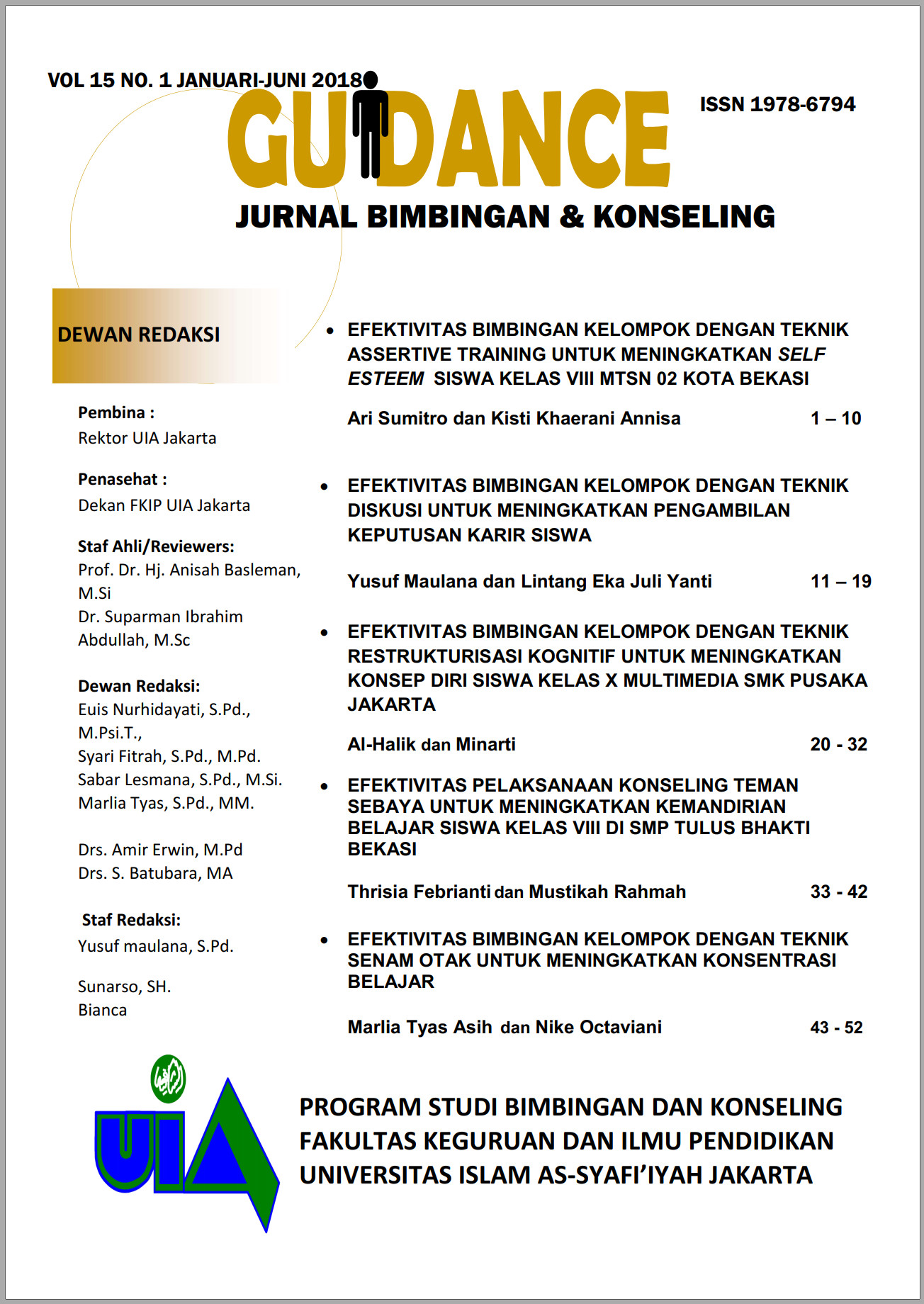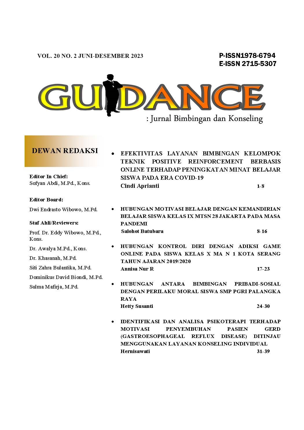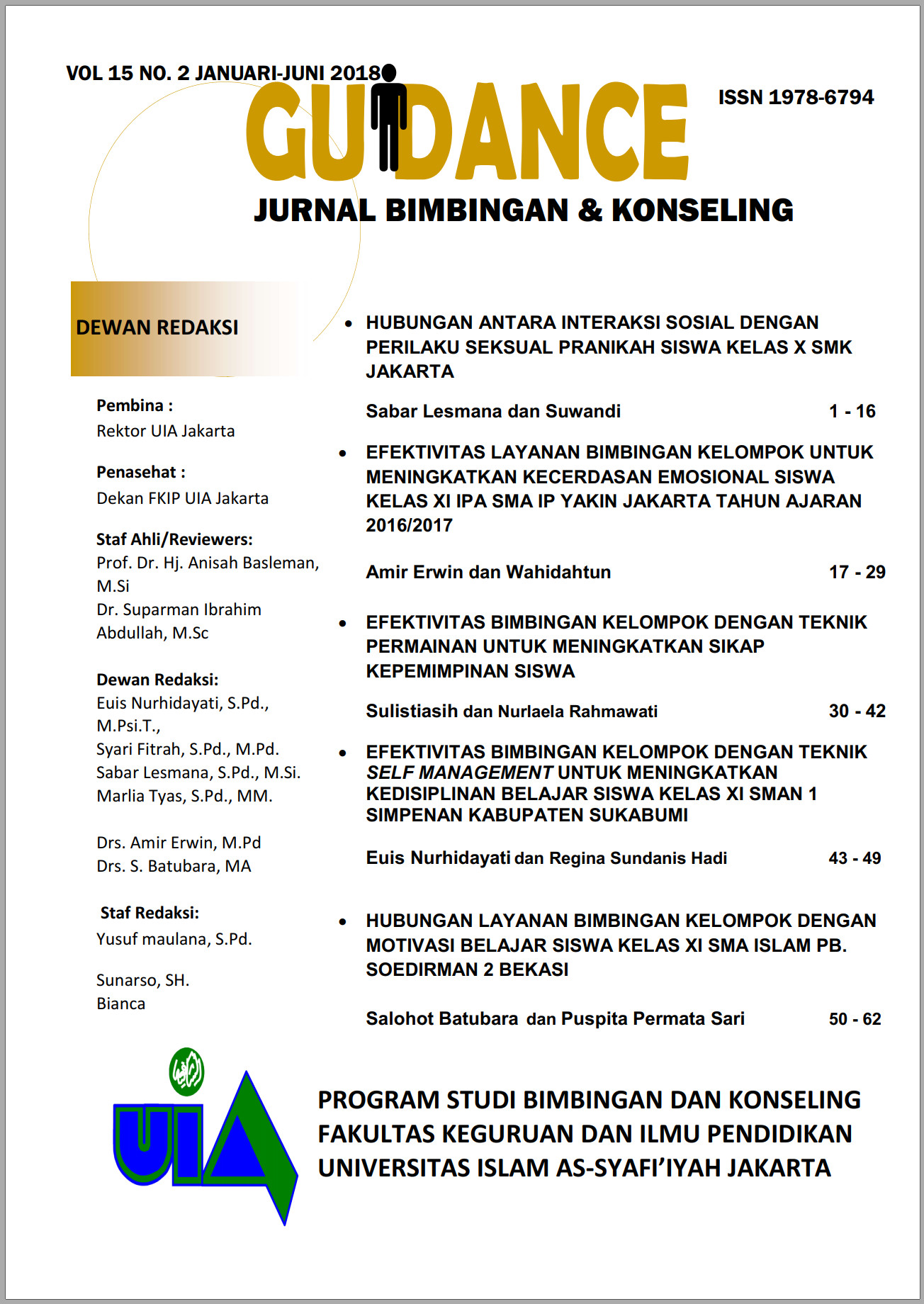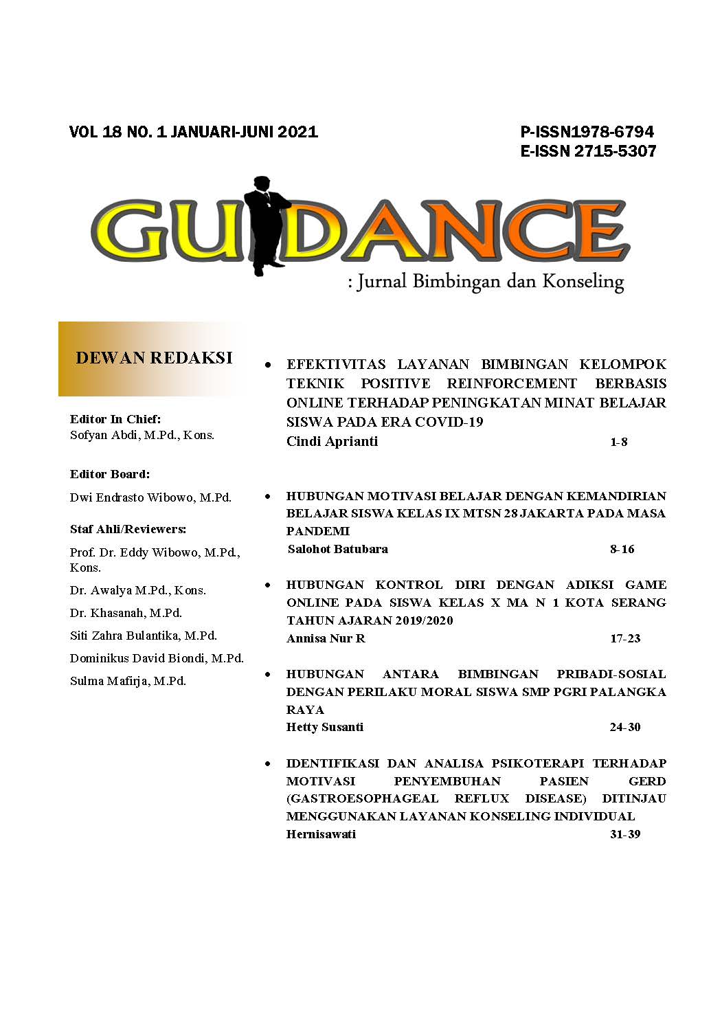 Vol. 15 No. 01 (2018)Guidance Jurnal Bimbingan dan Konseling