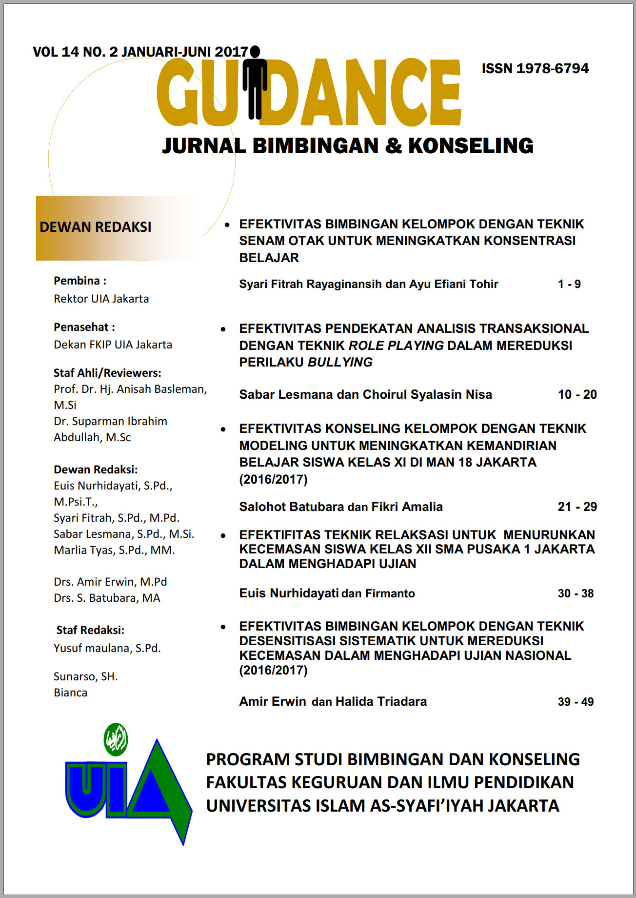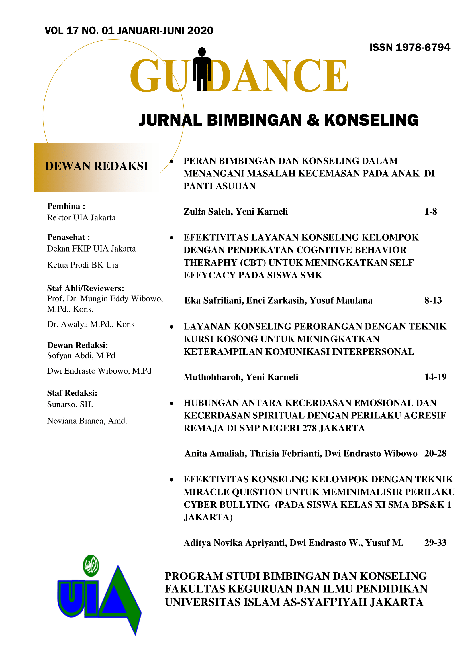 Vol. 14 No. 01 (2017)Guidance Jurnal Bimbingan dan Konseling